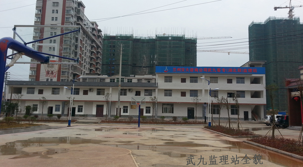2014年12月1日武九監理站建站基本完成,開始正常辦公。監理站位于陽新城北工業園區安寶花園,共三層樓,設有總監室、副總監室兼二分站、綜合辦、技術室、安檢室、試驗室、資料室、司機班、食堂、職工宿舍。各辦公房間寬敞明亮,宿舍舒適溫馨,食堂干凈衛生。辦公室制度上墻,網線、電話都已開通,每套宿舍都有衛生間、熱水器、電視。門前設有停車場,還有籃球場、運動器材、乒乓球臺等設施。職工業余時間可以在門前休閑、娛樂、鍛煉身體。
