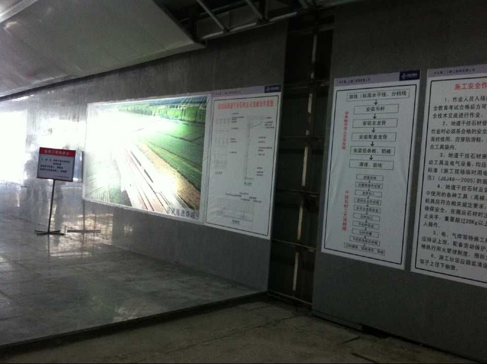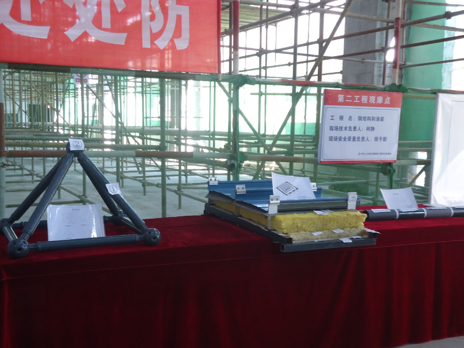 本次觀摩會共設6個觀摩點:第一觀摩點:樓梯踏步和欄桿;第二觀摩點:鋼結構和涂裝(鋼網架施工、高空拼裝施工、金屬屋面安裝、防火涂料施工);第三觀摩點:站臺鋪裝及雨棚;第四觀摩點:地道干掛石材及裝飾裝修;第五觀摩點:出站廳裝飾裝修和設備安裝(鋁條板吊頂及花崗巖鋪裝、電氣安裝);第六觀摩點:外墻裝飾裝修、玻璃幕墻和門廳立柱。觀摩過程中各級領導及各參建單位代表聽取了中交二公局現場對隴南車站樣板工程施工工序、工藝及控制要點的介紹。各有關領導及參見單位代表對此次觀摩工程施工、現場安全文明施工及工程質量情況給予了高度評價與肯定。