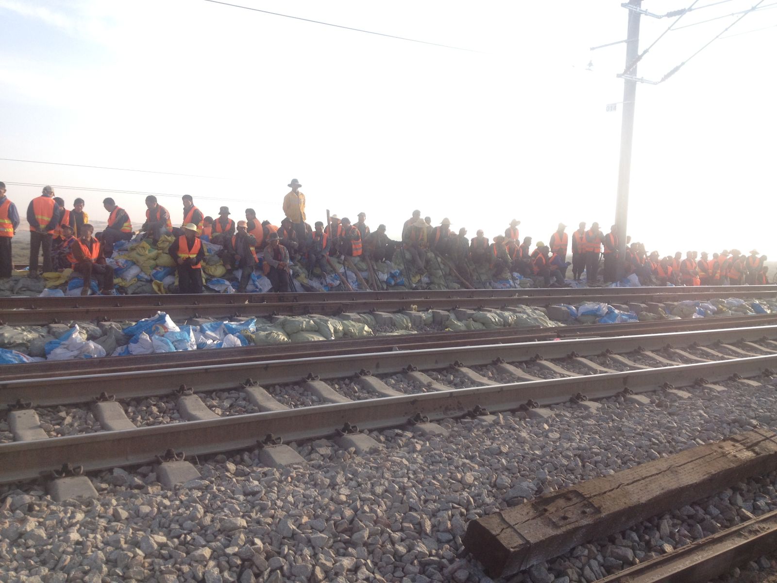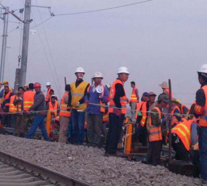 天窗點施工前現(xiàn)場監(jiān)理與施工負責人拉警示線