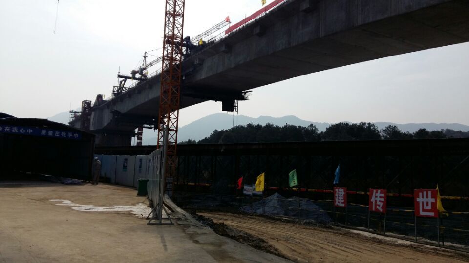 該橋跨越杭瑞高速公路,車流量較大。監理站高度重視該橋施工安全質量,派駐經驗豐富監理人員駐場監督,確保連續梁梁體質量及施工作業安全。該橋于3月10日21:40至3月11日4:30順利完成合攏段混凝土澆筑。標志著全線階段性施工邁向了一個新的臺階,同時也為后續架梁工作奠定了良好的基礎。