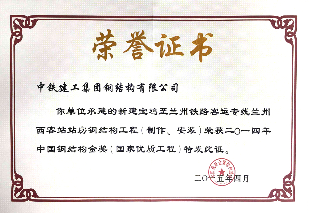 目前蘭州西客站已獲得鋼結構金獎(國家優質工程)和甘肅省建設工程“飛天金獎”,為“魯班獎”的評審打下堅實的基礎。