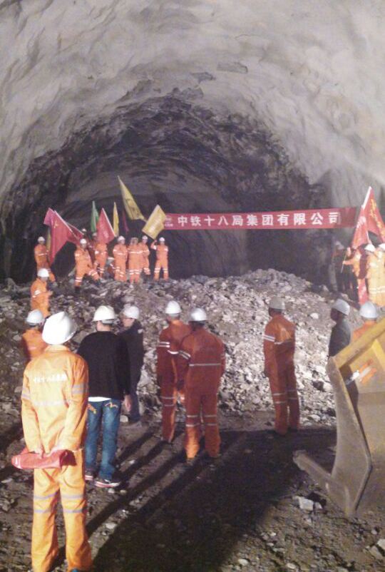 作為武九客專全線重難點工程的石馬寨隧道,全長3685.36m,也是全線最長的隧道。最大埋深350m,地質(zhì)結(jié)構(gòu)復(fù)雜,貫穿12處巖溶發(fā)育異常地帶,安全風(fēng)險高,圍巖變化大,極易發(fā)生突水、突泥現(xiàn)象,日最大涌水量為26640立方米。隧道施工排水采用深埋式中心管溝,在全國鐵路富水巖溶喀斯特地貌隧道尚屬首例,這也成為中國鐵路總公司的科研立項課題之一。該隧道由進口橫洞、1號斜井及出口組成,施工高峰期時共有五個作業(yè)面同時掘進。