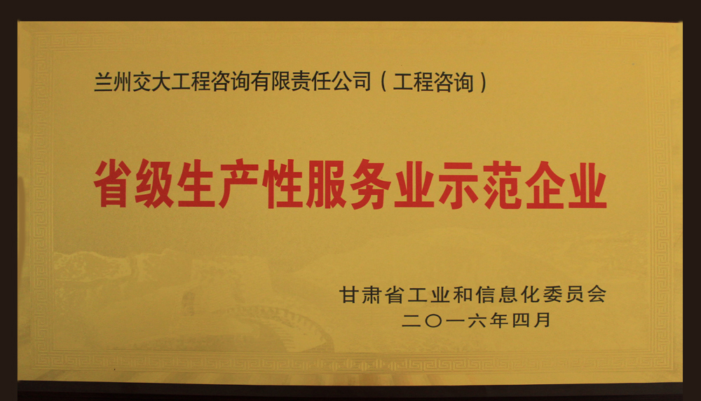 2016年5月20日,全省工業設計座談會在蘭州新區召開,會議宣布了2016年省級工業設計中心、生產性服務業功能示范區和示范企業名單。我公司成功入選甘肅省認定的十家“省級生產性服務業示范企業”名單,獲省工信委授牌表彰。獲得此項稱號的企業,今后甘肅省將在各項政策上予以扶持。公司將再接再厲,提質增效,在工業轉型升級過程中,更好地服務于我省經濟發展,努力為全省經濟建設貢獻力量。
