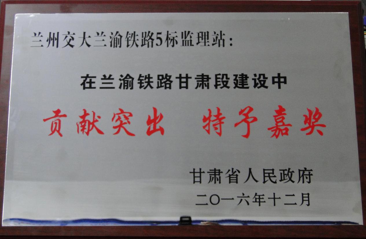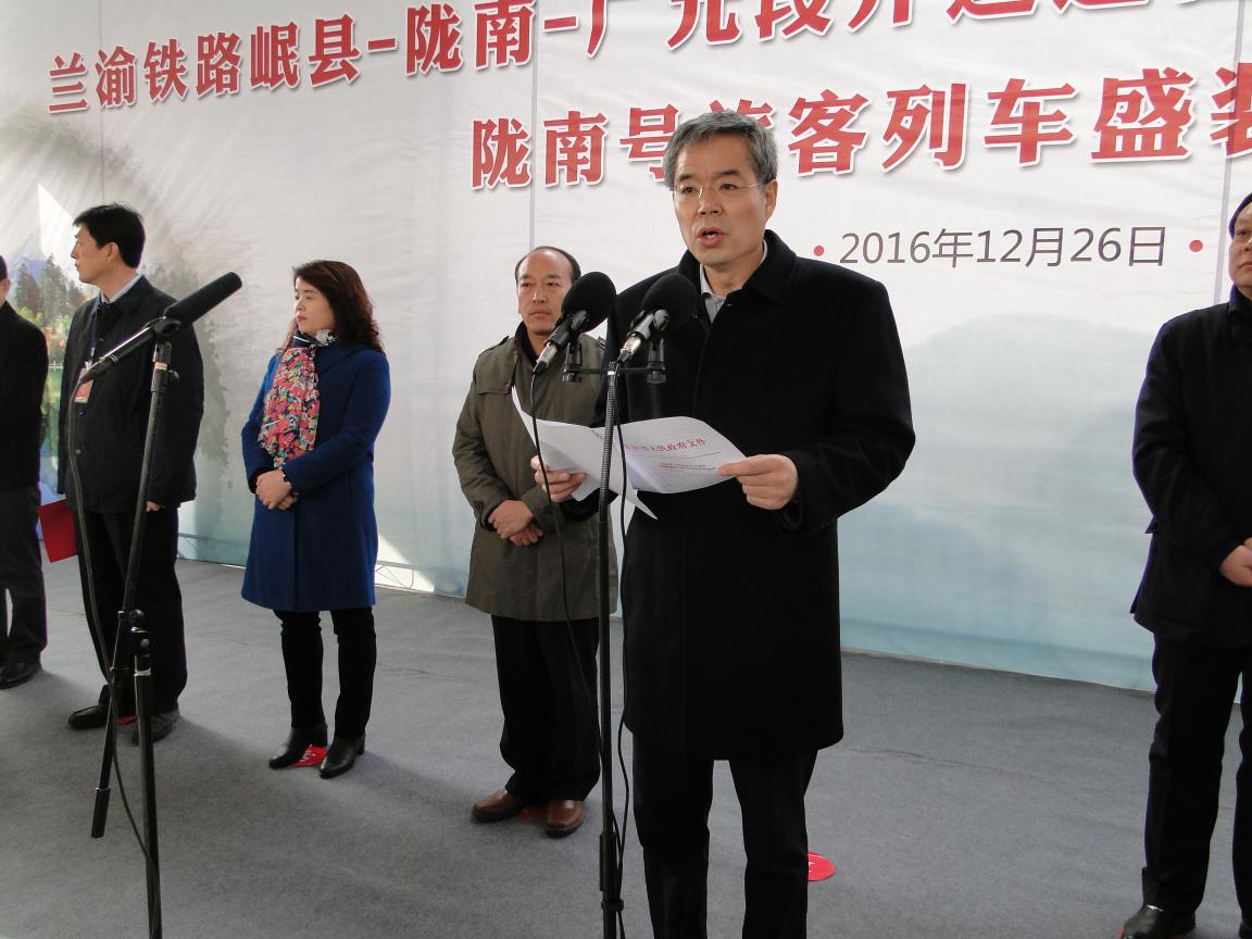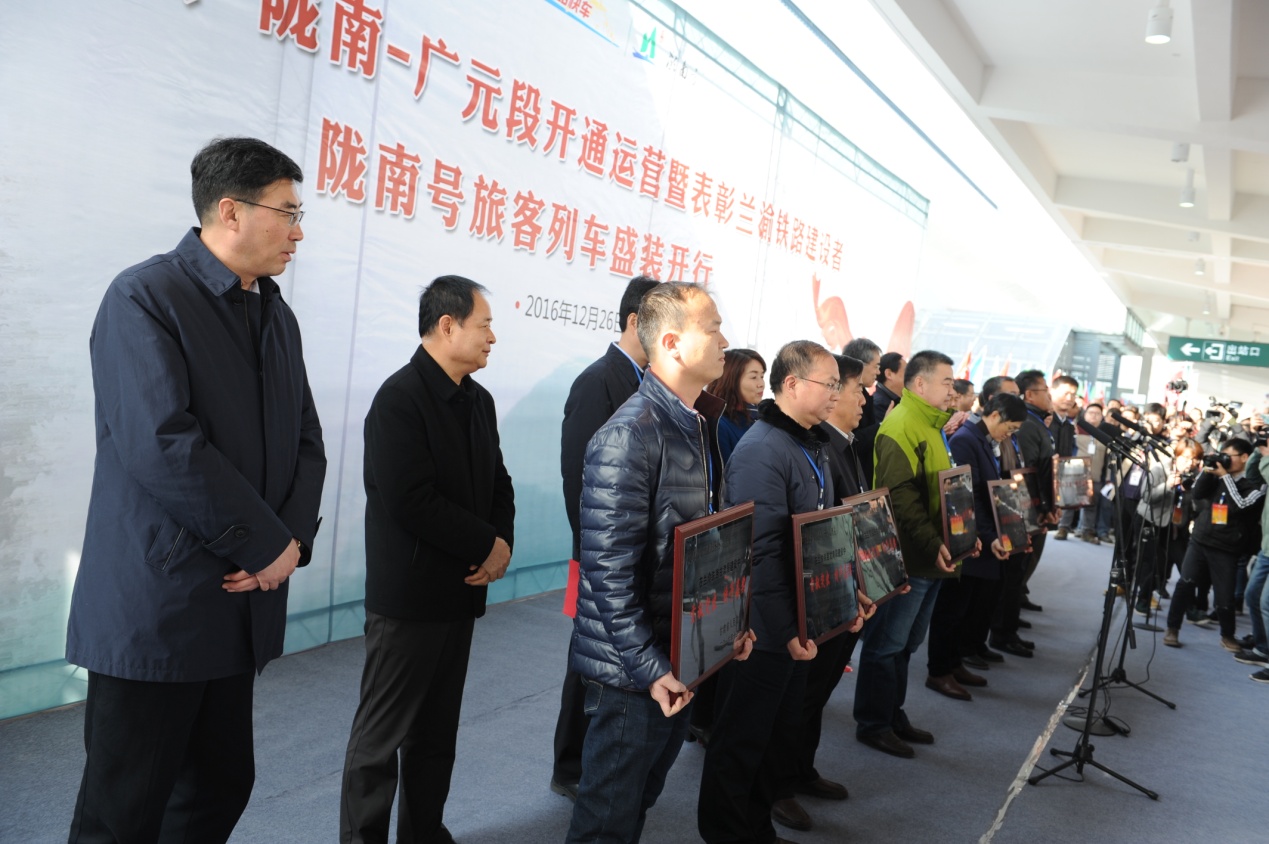 2016年12月26日上午,蘭渝鐵路岷縣-隴南-廣元段開通運營暨表彰甘肅段參建單位儀式在我公司負責監理的LYJL-5標隴南火車站隆重舉行。參加儀式的領導有:甘肅省省政府副秘書長俞建寧(原蘭州交通大學黨委書記),蘭州鐵路局局長王峰,蘭渝公司董事長、總經理熊春庚及隴南市各級領導。公司總經理兼LYJL-5標總監唐勇軍參加此次活動并上臺接受甘肅省政府嘉獎。