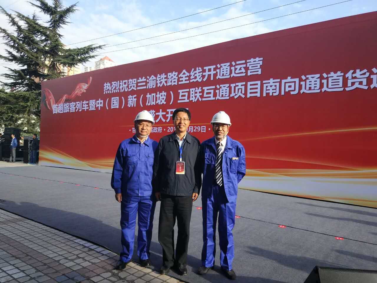 2017年9月29日上午,蘭渝鐵路全線開通運營盛大開行活動在蘭州火車站隆重舉行。蘭州交通大學校長楊子江、公司董事長劉鳳奎、公司總經理兼蘭渝項目總監唐勇軍受邀參加了此次活動。