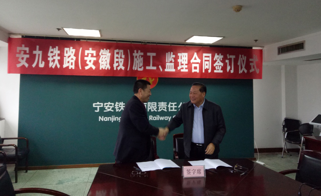 2017年10月18日,公司董事長劉鳳奎出席了安九鐵路(安徽段)監理合同簽訂儀式。我公司中標段為AJSJ-3標段,計劃工期為1825日歷天。工程計劃2017年10月10日開工,全部工程計劃2022年10月09日竣工。