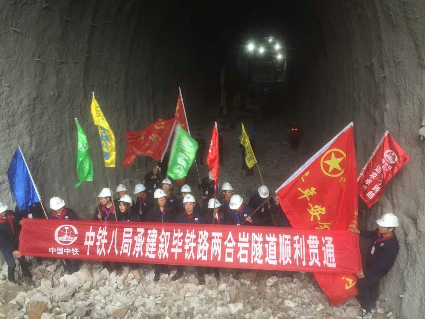 2017年12月22日,由蘭州交大敘畢監理項目部監理,中鐵八局施工的敘畢鐵路兩合巖隧道順利貫通。