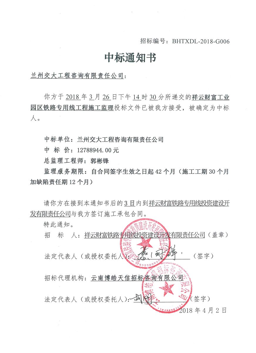公司成功中標(biāo)祥云財(cái)富工業(yè)園區(qū)鐵路專用線項(xiàng)目