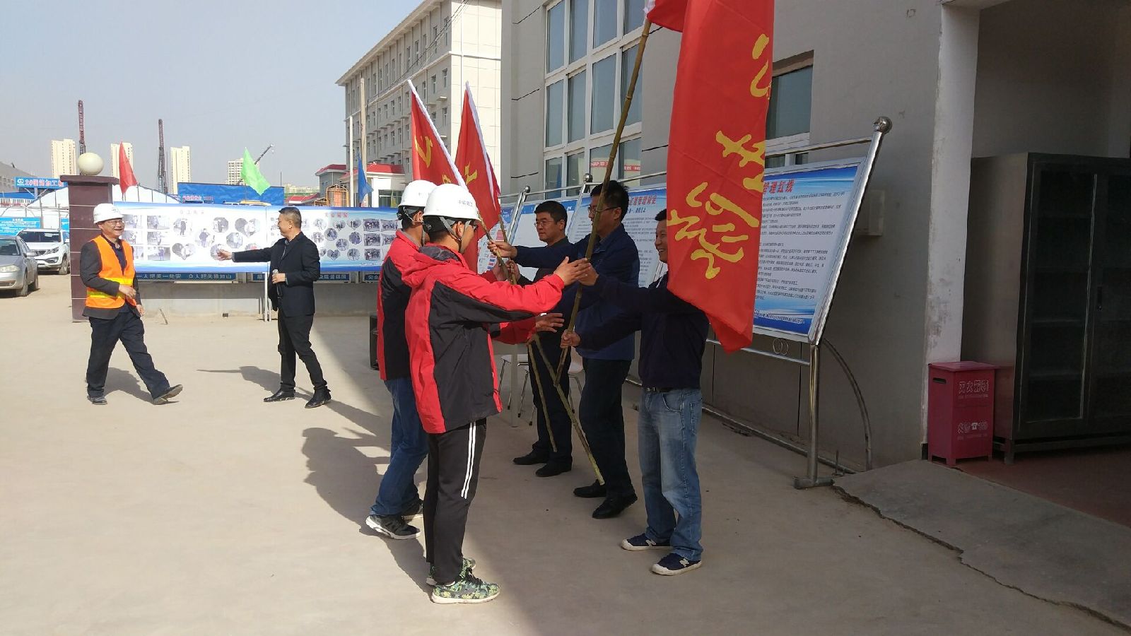 會上,我單位總監明確表示:我們堅持最高標準、堅持最嚴要求,通過規范化的工作方法和抓源頭、抓過程、抓細節的工作作風,確保車輛段擴能改造工程節點工期按期兌現,工程質量安全有序可控?;顒又?,與會領導為施工中涌現出來的三支突擊隊授旗,突擊隊代表進行施工宣誓。最后,項目經理分別與各施工隊伍簽定施工質量承諾書。