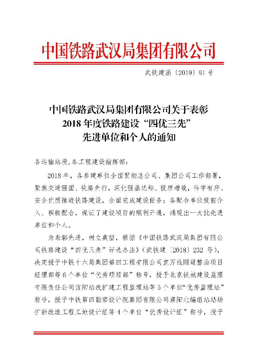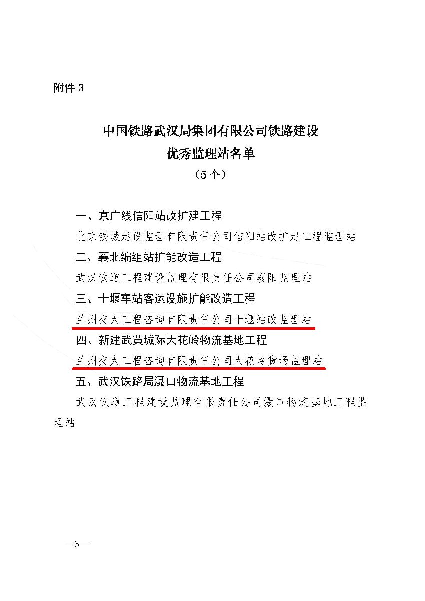 熱烈祝賀大花嶺監(jiān)理站、十堰站改監(jiān)理站雙雙榮獲武漢局優(yōu)秀監(jiān)理站