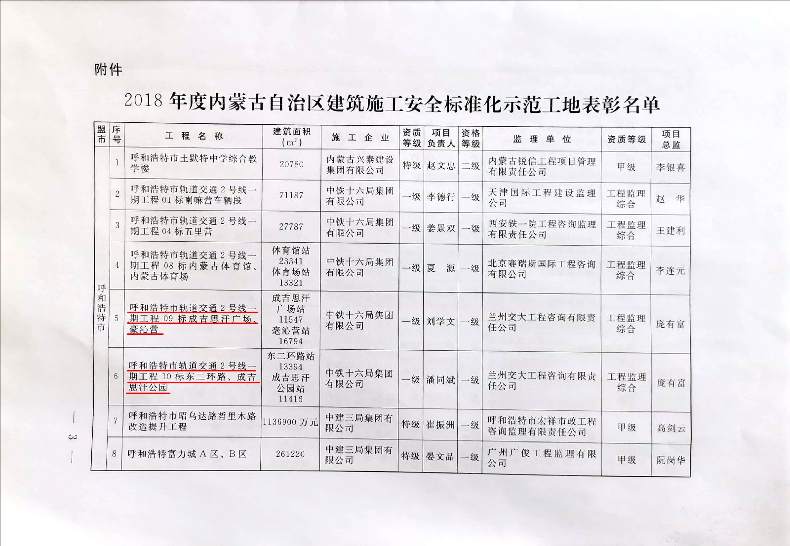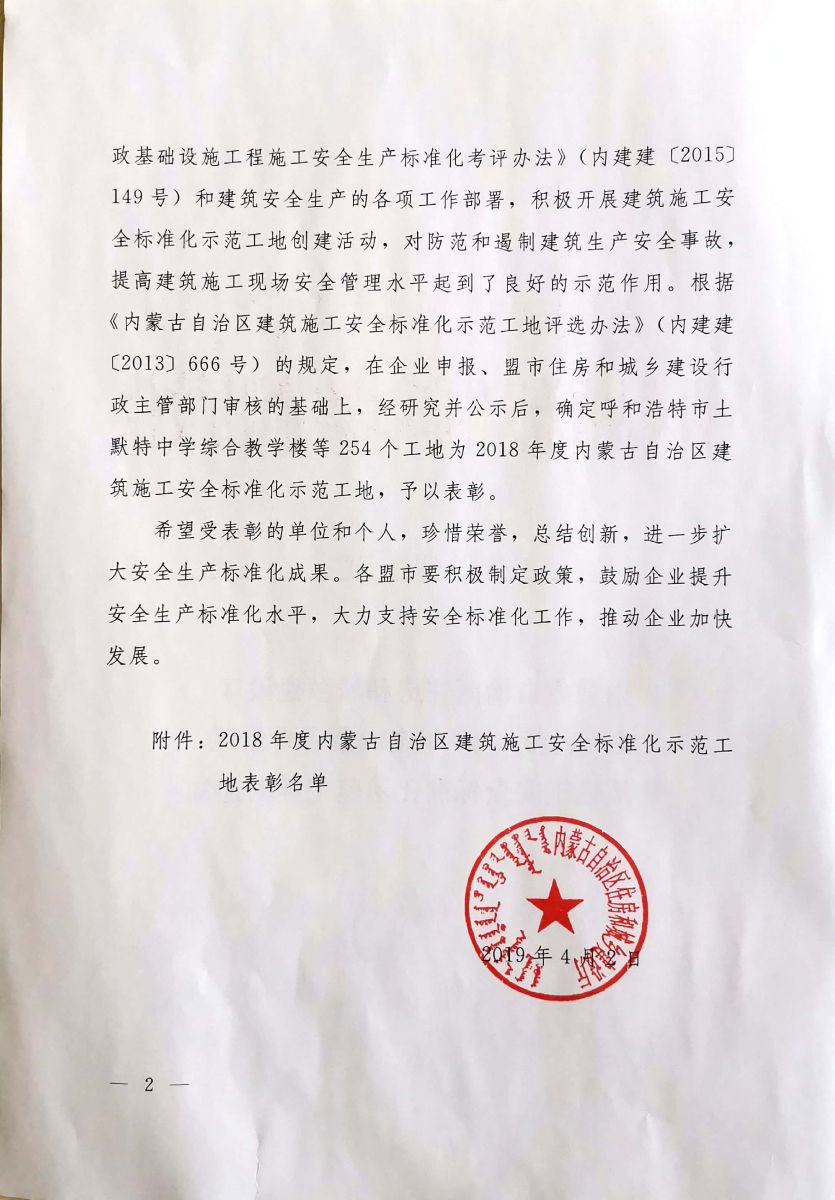5月28日,大同分公司呼市地鐵2號線監理五標項目部參加了“內蒙古自治區建筑施工安全標準化示范工地表彰大會”,我部監理的呼市地鐵2號線一期工程四個車站項目同時獲得“2018年度內蒙古自治區建筑施工安全標準化示范工地”榮譽證書。繼一家村站項目獲得“2017年度建筑施工安全標準化示范工地”后,呼市地鐵2號線監理五標管轄范圍內的五個車站(成吉思汗廣場站、毫沁營站、成吉思汗公園站、一家村站以及東二環路站)全部獲此殊榮。這是一份肯定、更是一份激勵!