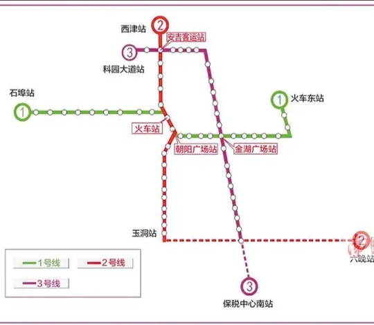 南寧地鐵一、二、三號線示意圖