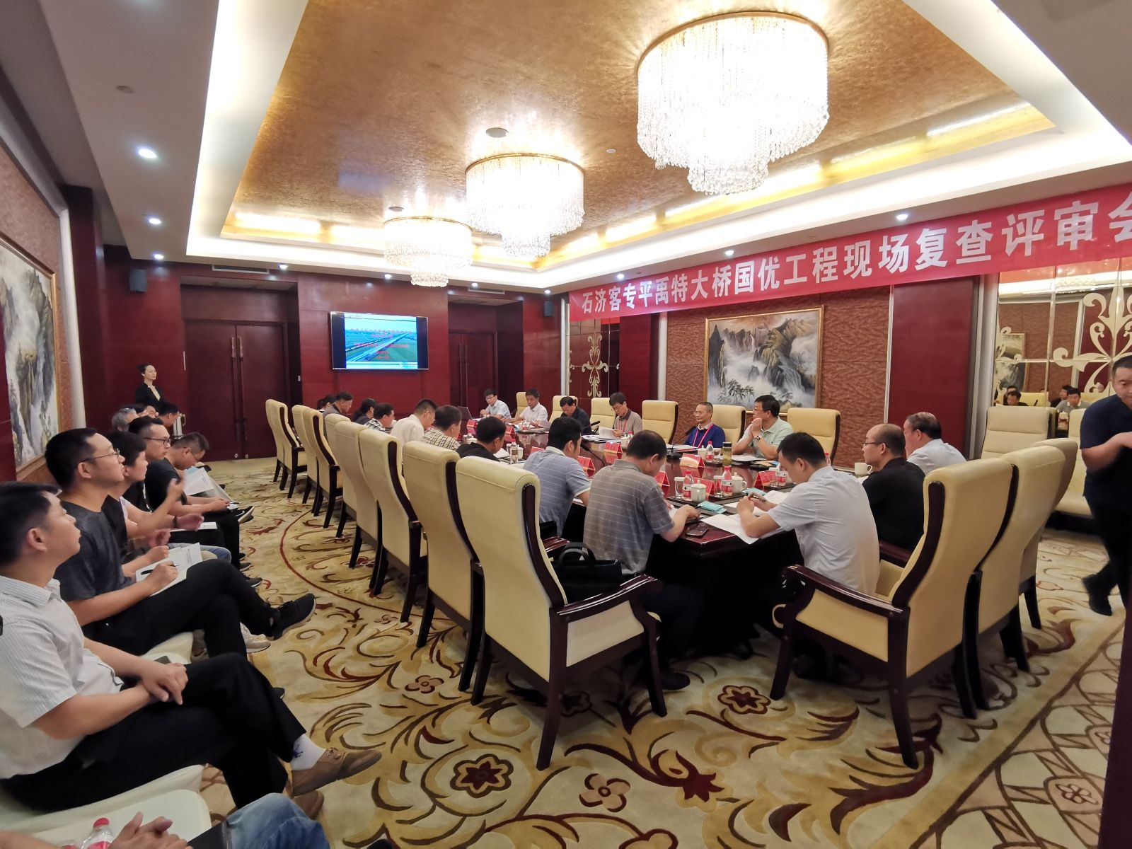 由我公司及華鐵公司監理,中鐵一局、中鐵十八局、中鐵電氣化局施工,新建石家莊至濟南鐵路客運專線平禹特大橋申報國家優質工程現場復查會于7月22-24日在德州市柳湖書院召開。參會的有天津市建筑業協會副會長黑金山,國優復查專家組李小和、沈曼盛、梁愛國、黃釗,石濟公司、濟南監督站、濟南西工務段以及各參建單位領導共計33人,我公司石濟客??偙O高軍鋒,副總監高長恒參加。專家組聽取了各參建單位的匯報后安排了對工程現場檢查復查及內業資料檢查。