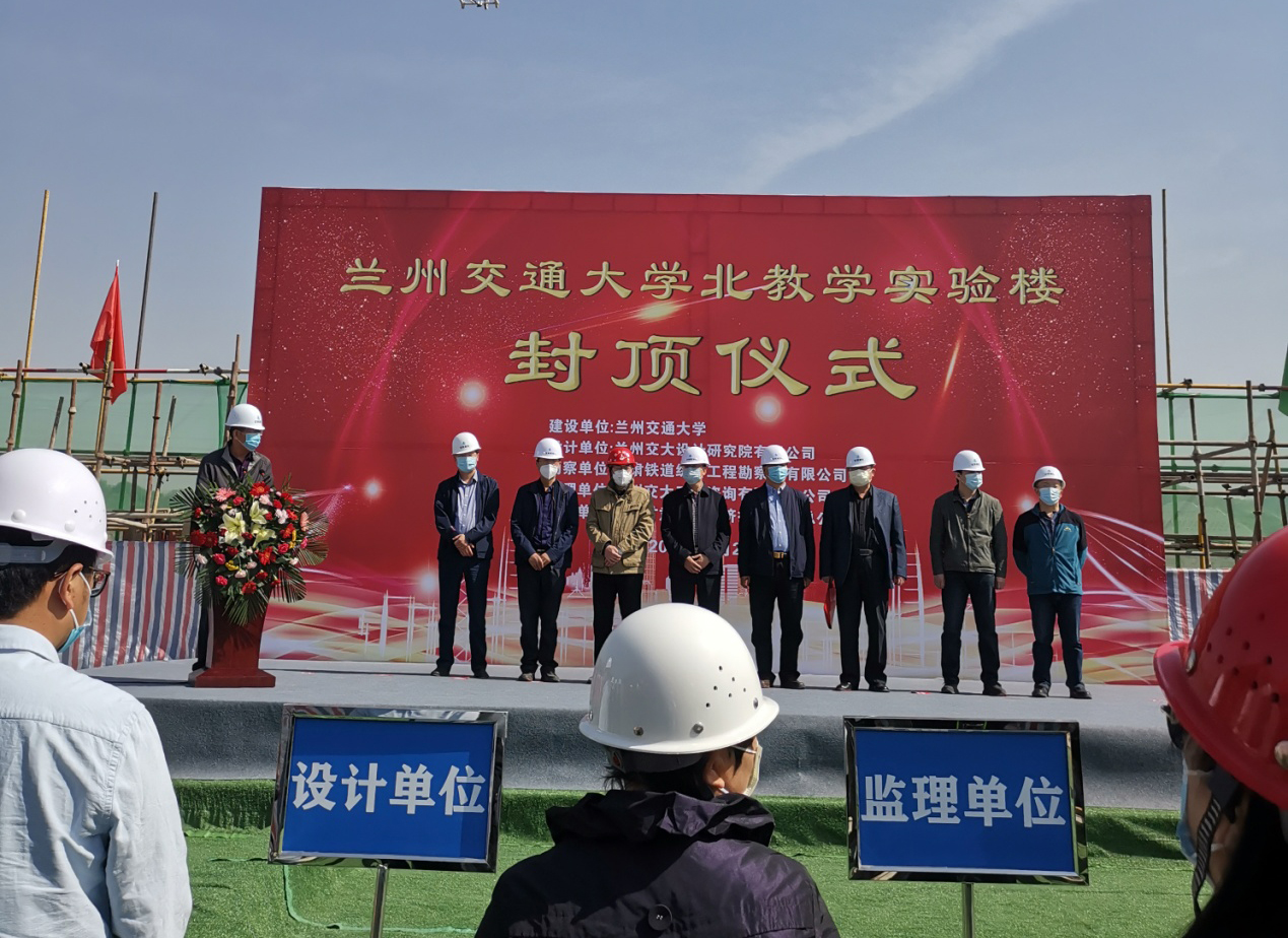 在這個生機盎然的季節里,春風和煦、陽光溫暖,我們迎來了蘭州交通大學北教學實驗樓主體封頂的日子,這是所有參建各方共同努力的成果,大家相聚于此隆重慶祝主體封頂儀式。參加封頂儀式的領導有:蘭州交通大學李引珍校長、高云慶副校長;蘭州交通大學國有資產管理處賈愛平副處長;蘭州交通大學審計處何軍副處長;蘭州交大設計研究院有限公司王華總工程師;蘭州交大工程咨詢有限責任公司劉鳳奎董事長;中國甘肅國際經濟技術合作總公司國內工程公司朱國嶺總經理。