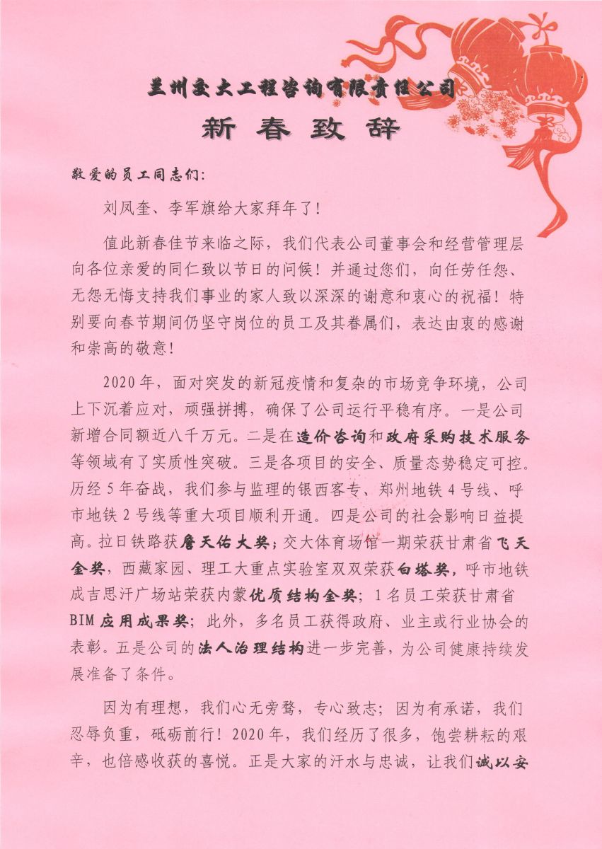 2021年新春致辭