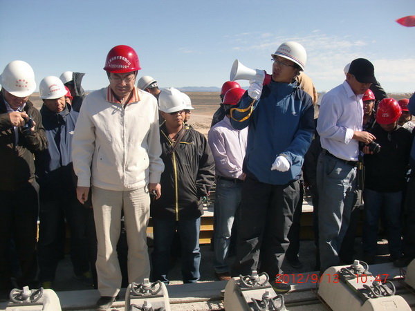 劉鳳奎董事長首先對監理站今年以來的工作給予了充分肯定,他說:監理站管段地處極干旱荒漠地區,常年大風,夏季高溫、冬季嚴寒,自然條件十分艱苦,但全體員工今年以來在監理站的堅強領導下,克服種種困難,嚴格履行職責,按照甘青公司和玉門指揮部的部署要求,積極投身“百日勞動競賽”活動,堅持現場盯控,認真監督檢查,確保了施工質量、安全、進度的有效控制,特別是無砟軌道施工開展以來,監理站在采取多項措施,強化現場質量控制的同時,督促要求施工單位在嚴格按照“機械化、精細化、標準化、程序化”施工,依靠科技攻關破解混凝土養護等多個難題,使管段無砟軌道施工成為全線的“樣板示范”,做了大量的工作,付出了艱辛與努力,得到甘青公司和玉門指揮部的表揚。成績來之不易,希望監理站全體員工再接再厲,保持不懈怠、不松勁和連續作戰的作風,把后續的監理工作做得更好。