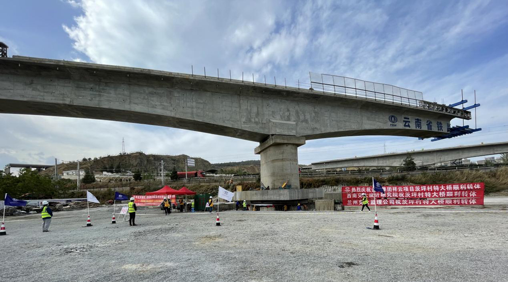 祥云財富工業園區新建鐵路專用線茨坪村特大橋20#墩轉體順利完成