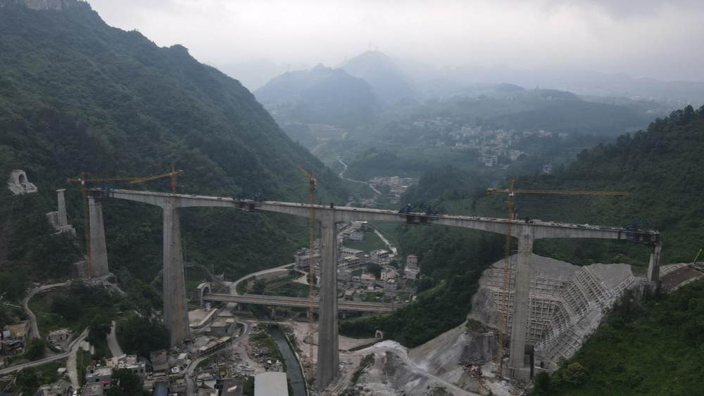 敘畢鐵路魚洞鄉特大橋連續剛構順利合龍
