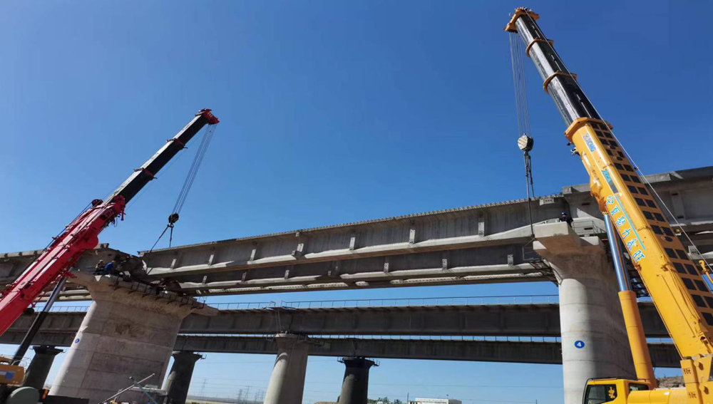 國道307線甜水河至靈武公路與寧東鐵路大棗線交叉工程南溝大橋橋梁架設(shè)順利完成