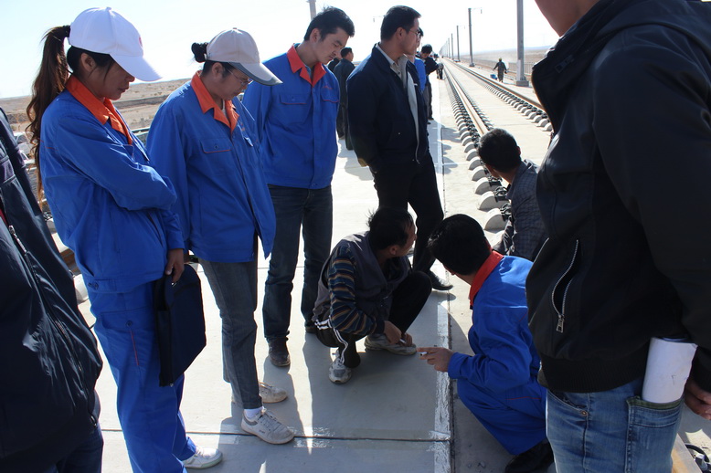 2013年9月15日上午,蘭州交大咨詢公司蘭新鐵路甘青段監(jiān)理站在DK1097-DK1098段組織召開17標(biāo)嵌縫膠施工現(xiàn)場觀摩會,中鐵十七局項目部有關(guān)領(lǐng)導(dǎo)、各分部經(jīng)理、總工、工程、技術(shù)、安質(zhì)部長、參與嵌縫膠施工的所有作業(yè)工班長以及監(jiān)理各分站長、現(xiàn)場專監(jiān)近60人到會參加了現(xiàn)場觀摩。